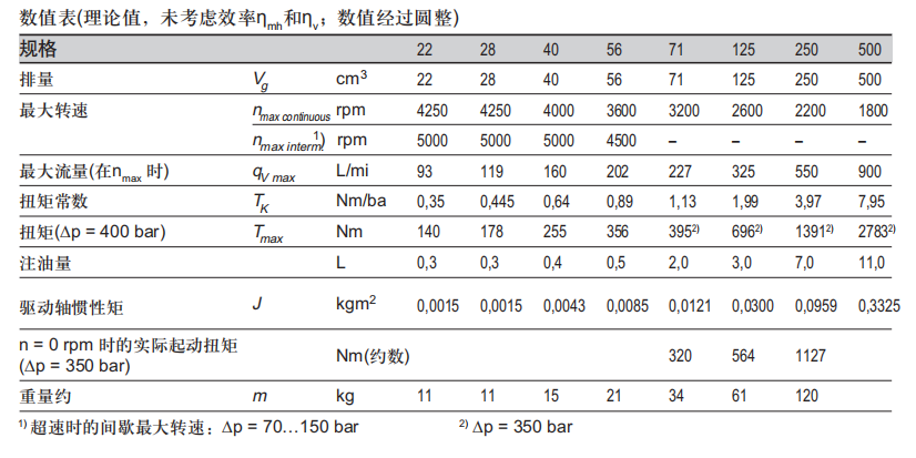 A4FM 電機有以下排量尺寸可供選擇:22 | 28 | 40 | 56 | 71 | 125 | 250 | 500 毫升/轉。標稱壓力為 350 bar,最大壓力為 400 bar。
