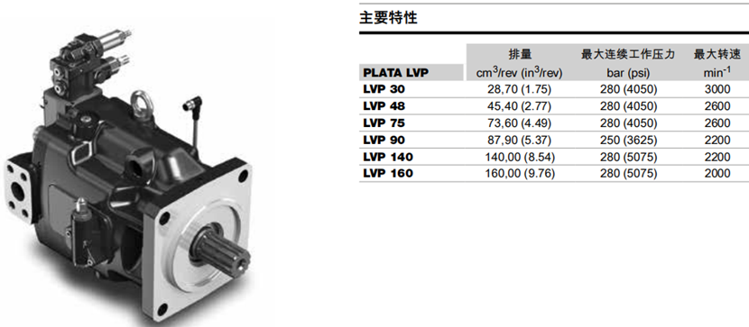 博達LVP系列凱斯帕變量軸向柱塞泵型號及參數: