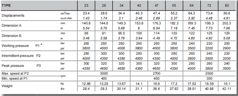 工作壓力P1 bar psi 260-3800