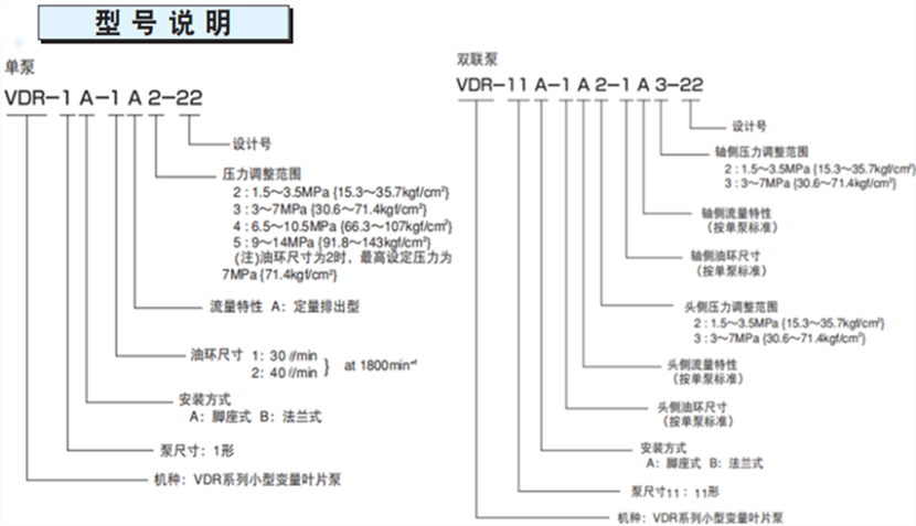 不二越VDR22設計系列變量葉片泵型號說明: