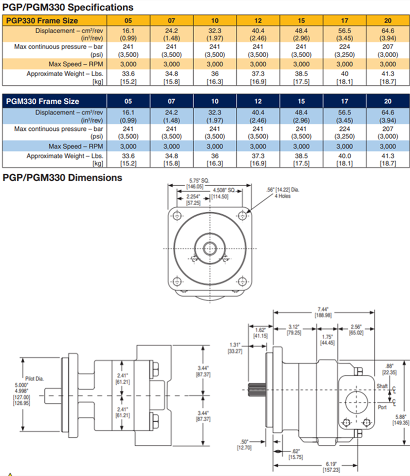 派克鑄鐵齒輪泵PGP330系列參數: