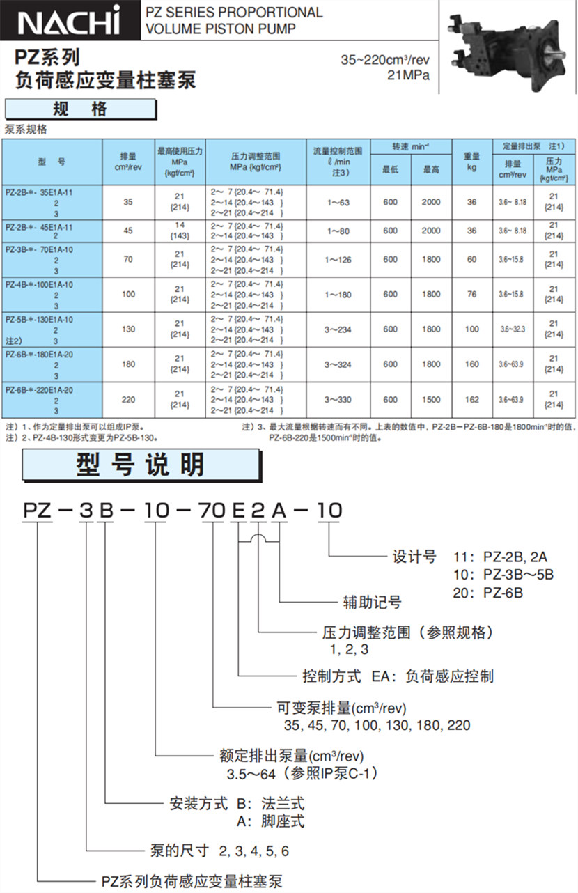 ①PZ系列負荷感應變量柱塞泵以PVS系列變量柱塞的技術為基礎,通過在半圓筒斜盤部采用靜壓軸
